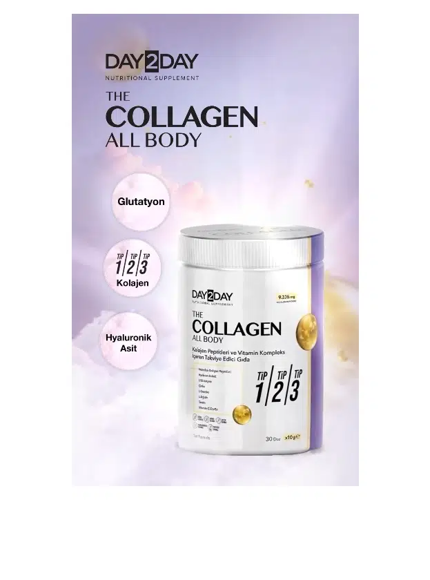- Günde 10 gramlık porsiyonlarla kolayca tüketilebilen, 45 doz içeren The Collagen All Body, günlük kolajen ihtiyacınızı karşılar.