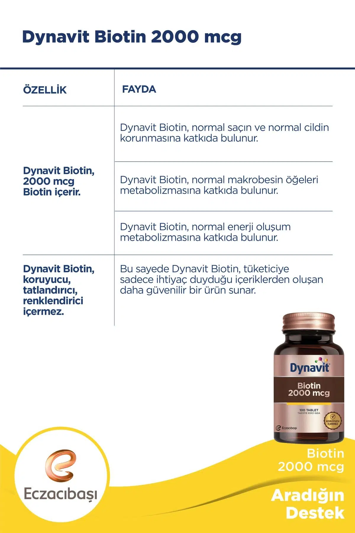 | Etiketler | Dynavit Biotin 2000 Mcg 100 Tablet |
