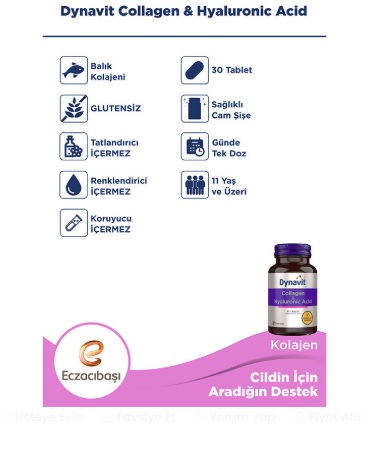 | Etiketler | Dynavit Collagen Hyaluronic Acid 30 Tablet |