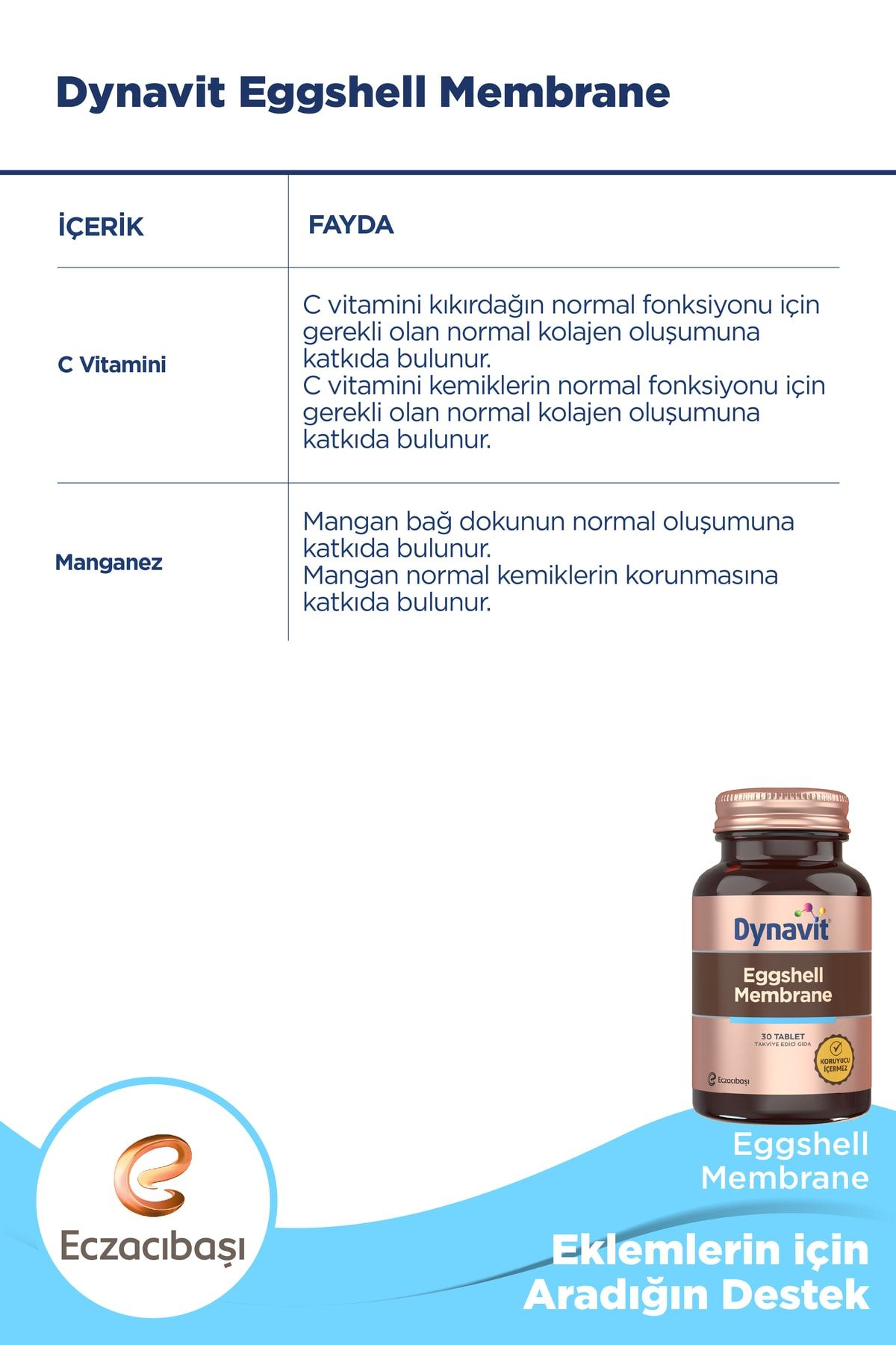 | Etiketler | Dynavit Eggshell Membrane Yumurta Kabuğu Zarı, Zerdeçal Ve Manganez Içeren Takviye Gıda 30 Tablet |