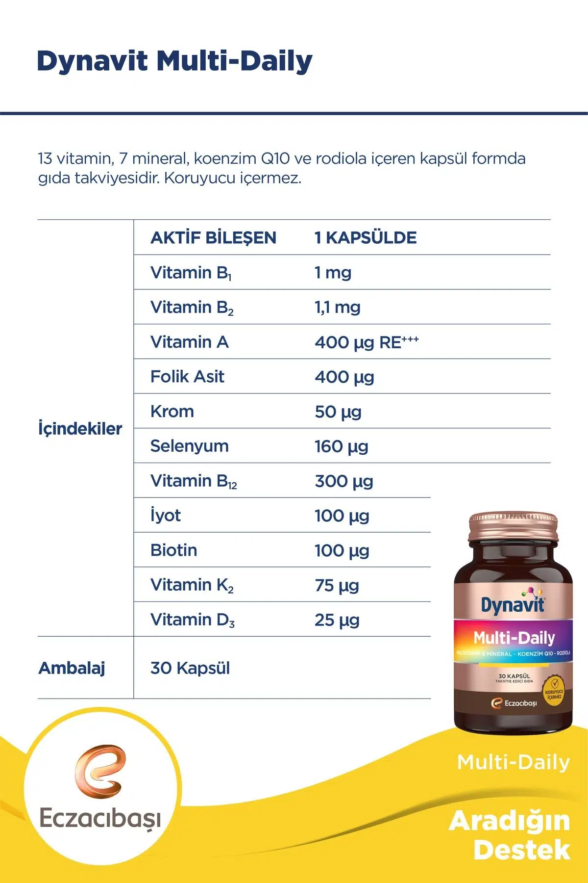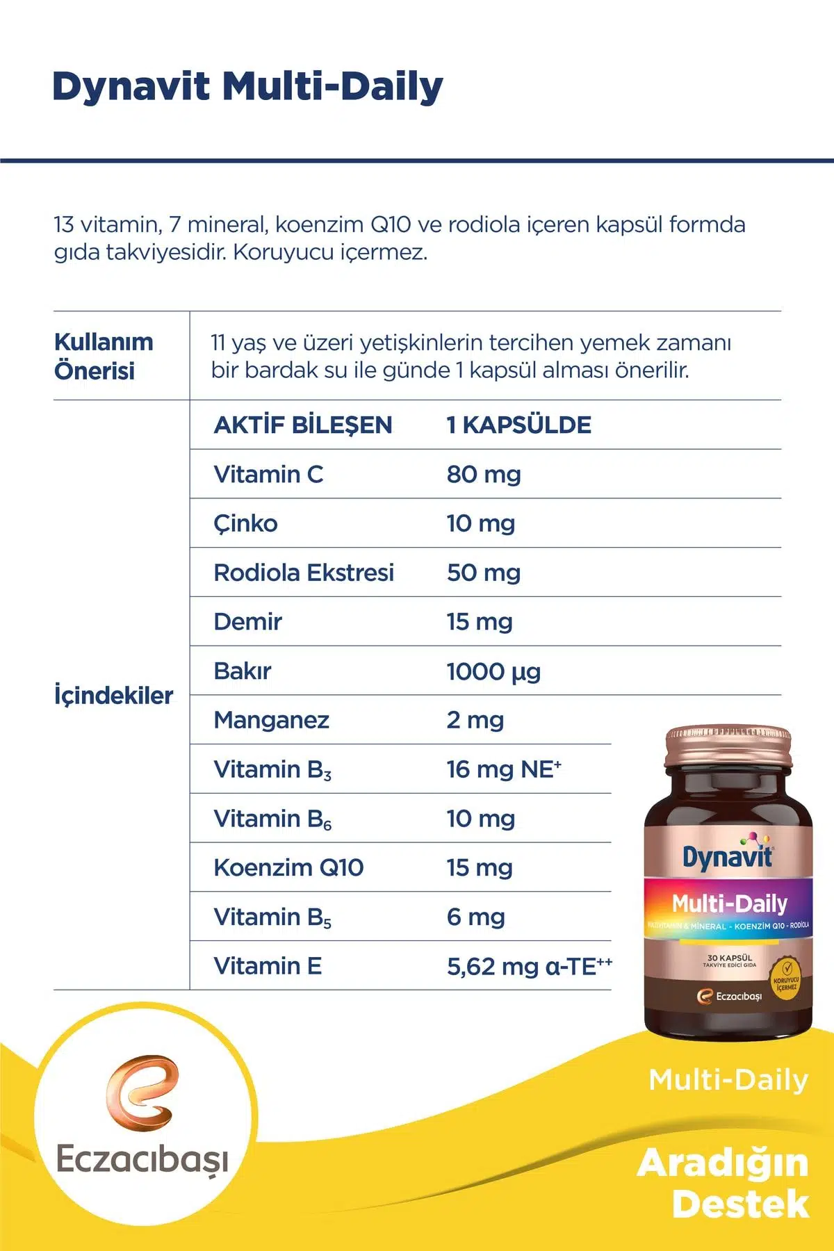 | Etiketler | Dynavit Multi-daily Multivitamin&Mineral-Koenzim Q10-Rodiola 30 Kapsül |