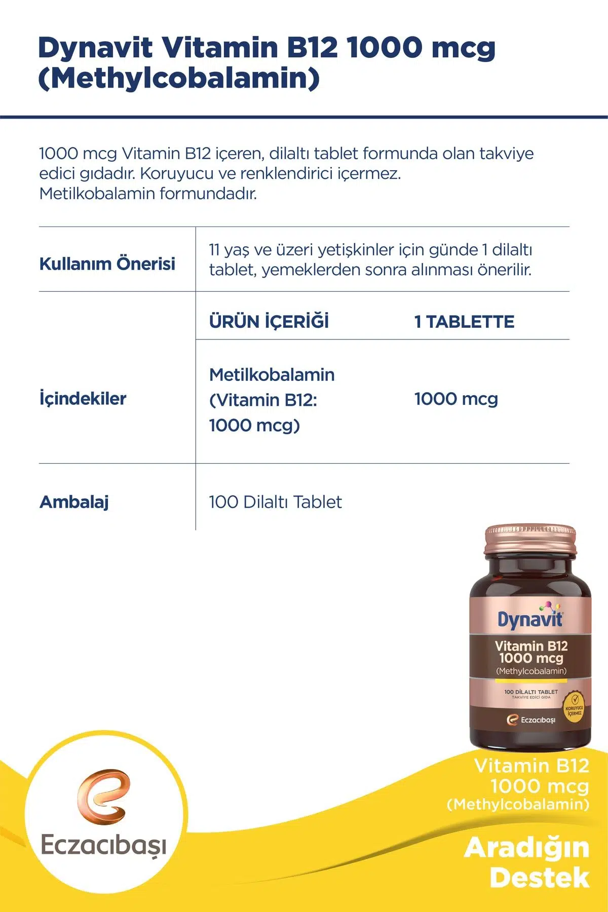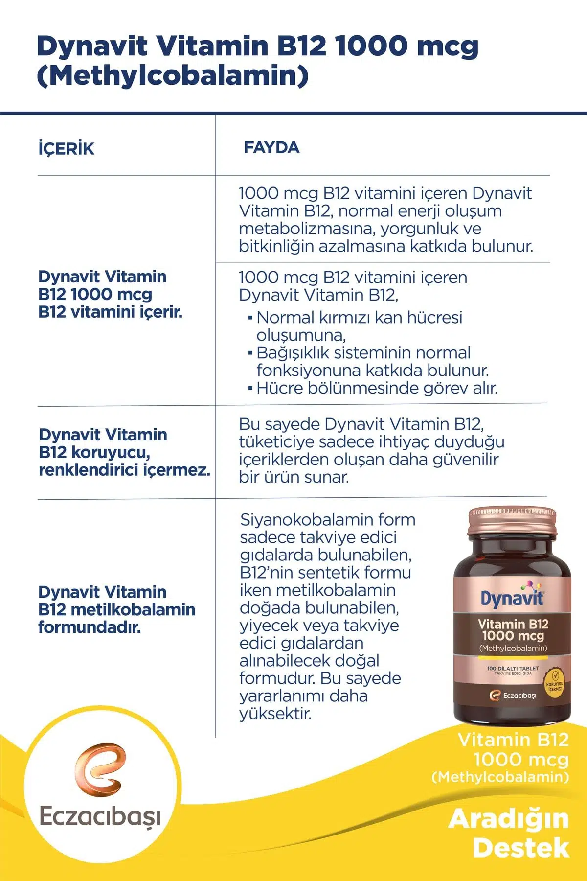 | Etiketler | Dynavit Vitamin B12 1000 Mcg 100 Tablet |