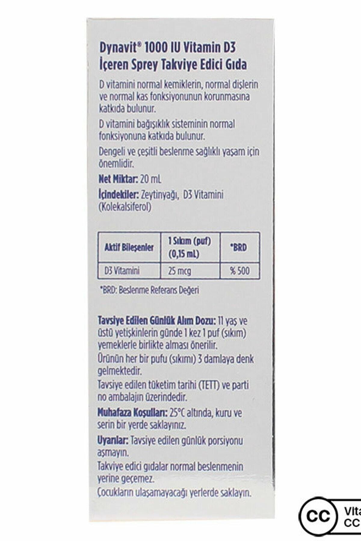 | Etiketler | Dynavit Vitamin D3 1000 Iu 20 ml Sprey |