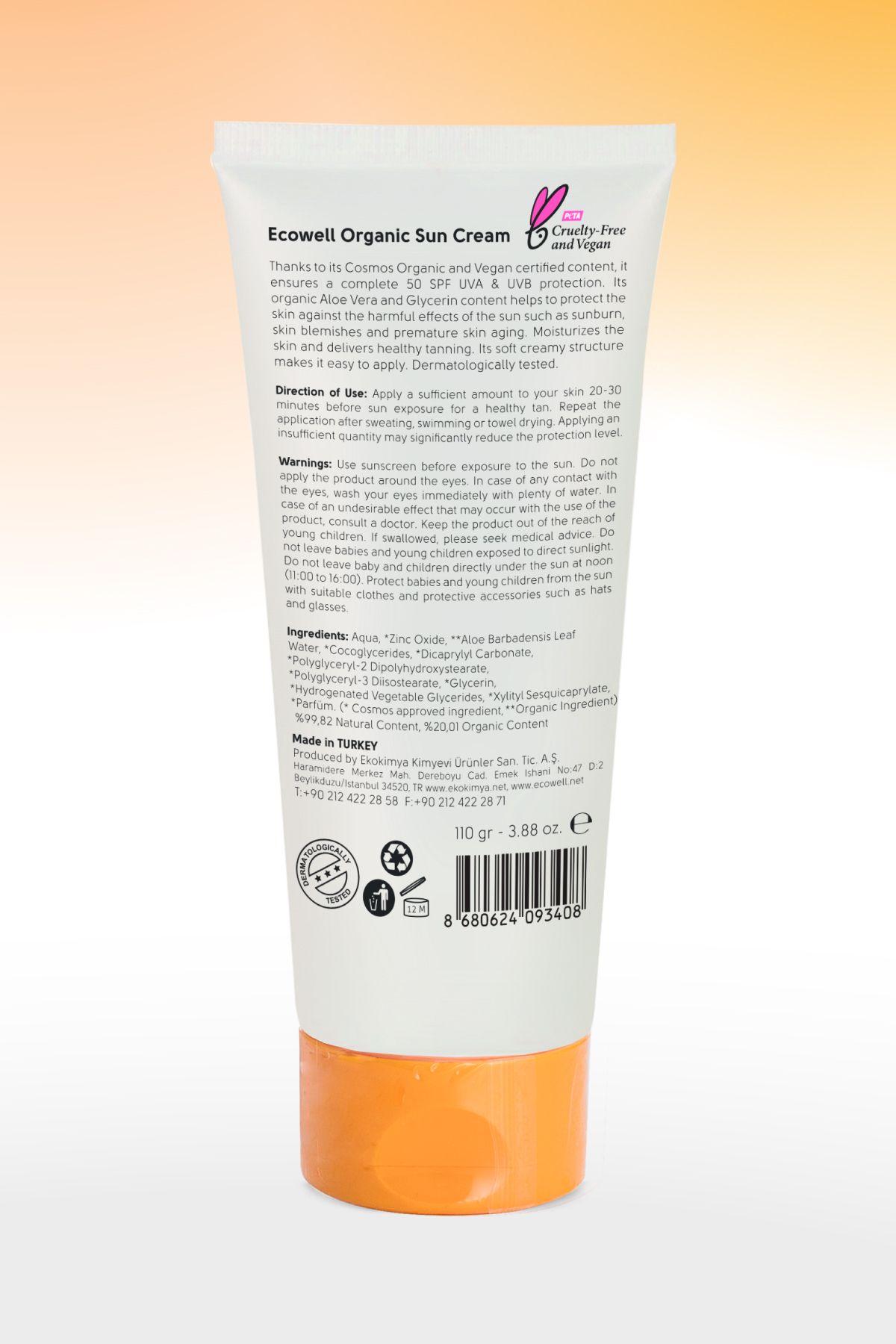 | Etiketler | Ecowell Güneş Kremi SPF50, Organik & Vegan Sertifikalı, Mineral Filtre, Yüz ve Vücut, UVA UVB Koruma, 110gr |