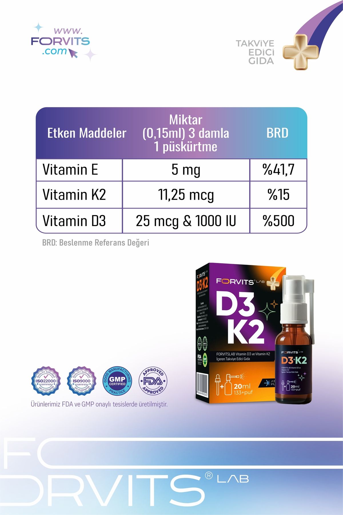 | Etiketler | Forvits Lab Vitamin D3k2 Sprey 20 ml |