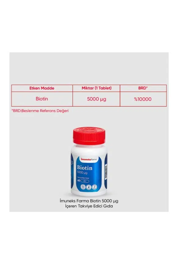 | Etiketler | İmuneks Farma Biotin 5000 mcg 60 Tablet |