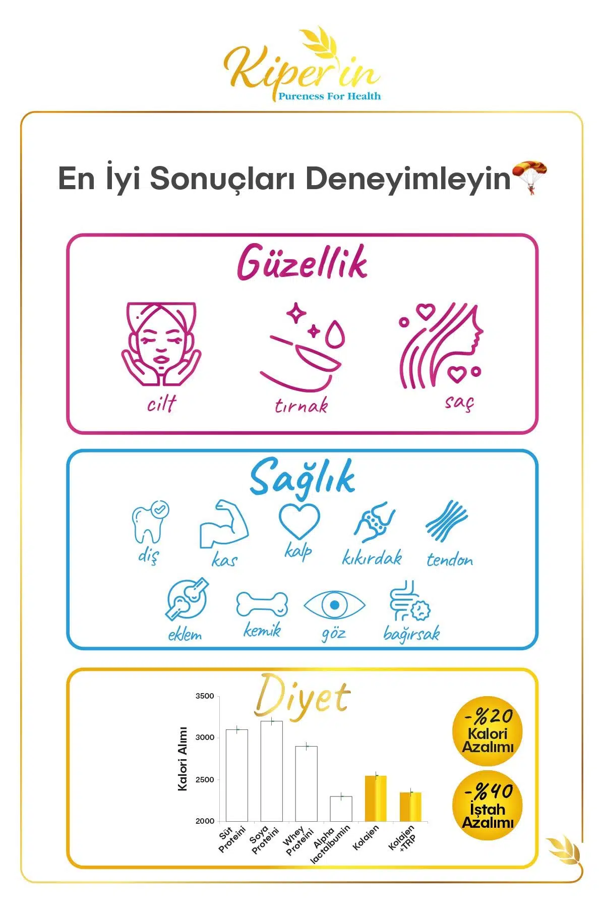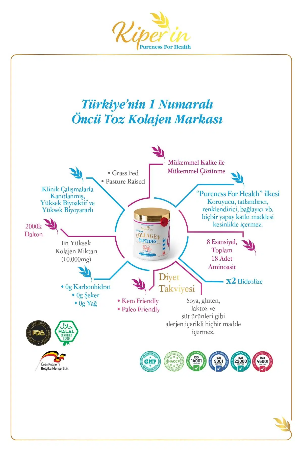 | Etiketler | Kiperin Collagen %100 Saf Ve Doğal Yüksek Biyoaktif Çift Hidrolize Kolajen Peptitler Içeren Diyet Takviyesi(50günlük) |
