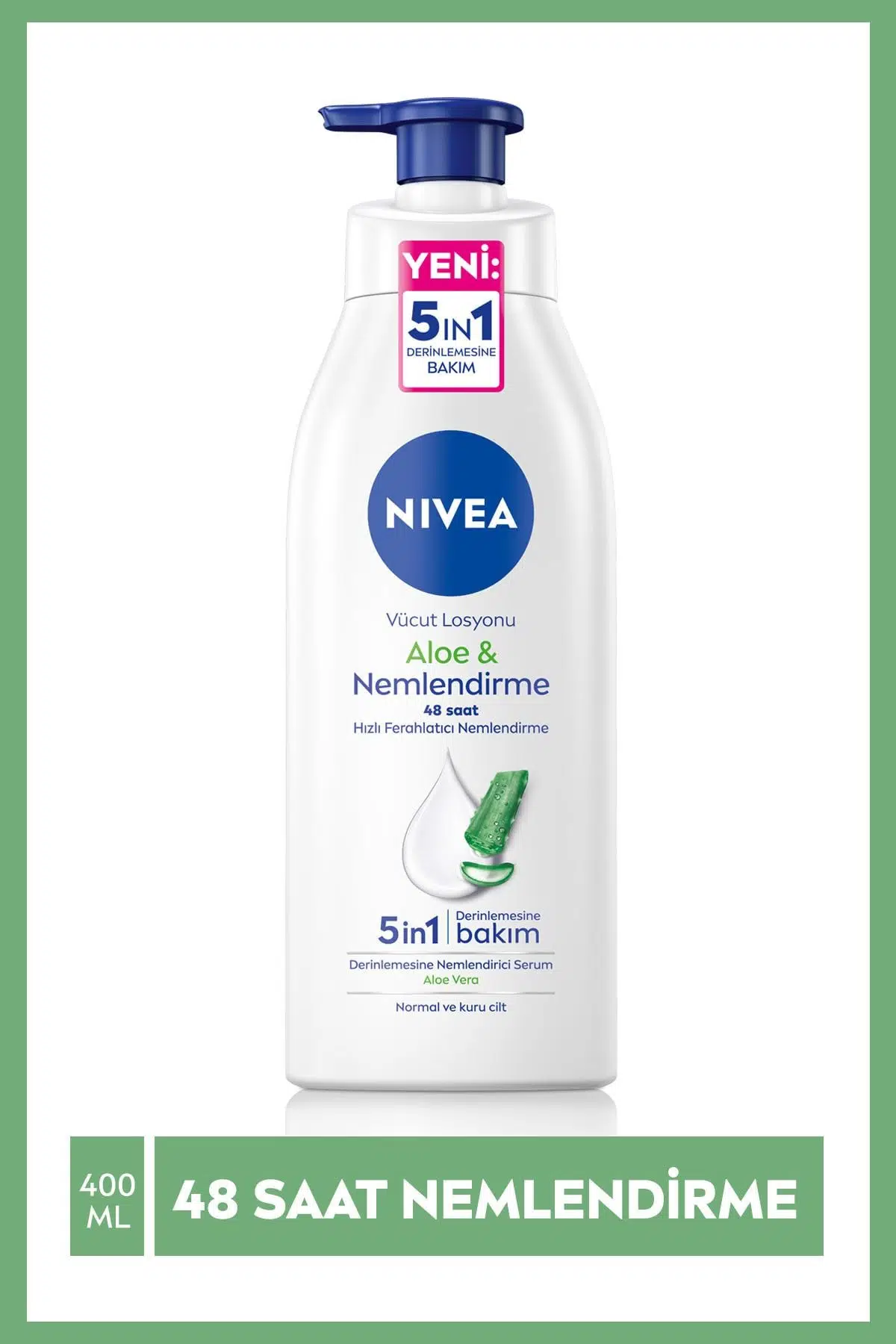 Nivea Body Aloe Vera Losyon 400 ml ile cildinize ferahlık kazandırın, uzun süreli nemin keyfini yaşayın.