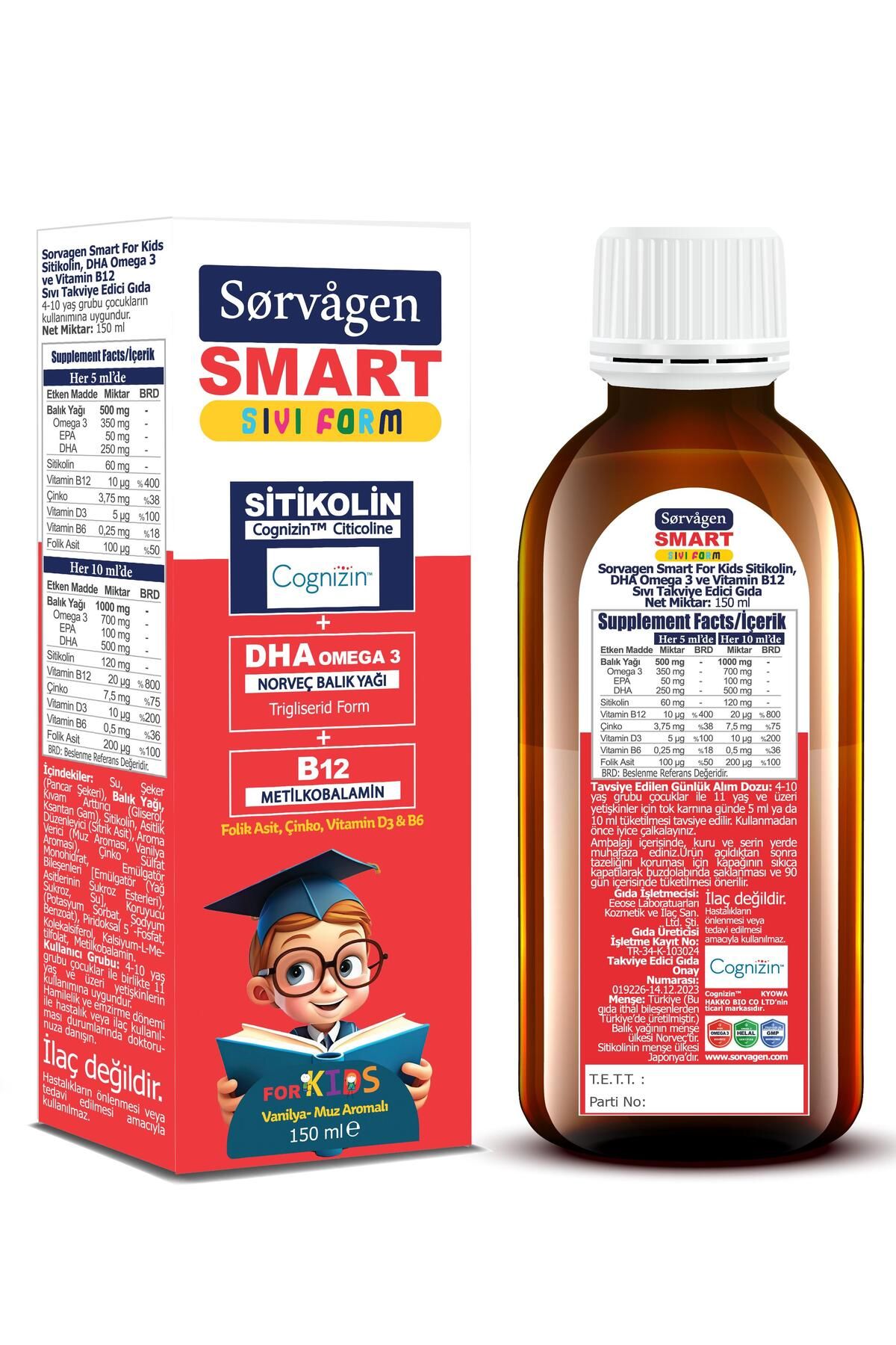 | Etiketler | Sorvagen Smart Kids Sıvı Form - Sitikolin DHA Omega 3 Norveç Balık Yağı ve B12 - 150 ml |