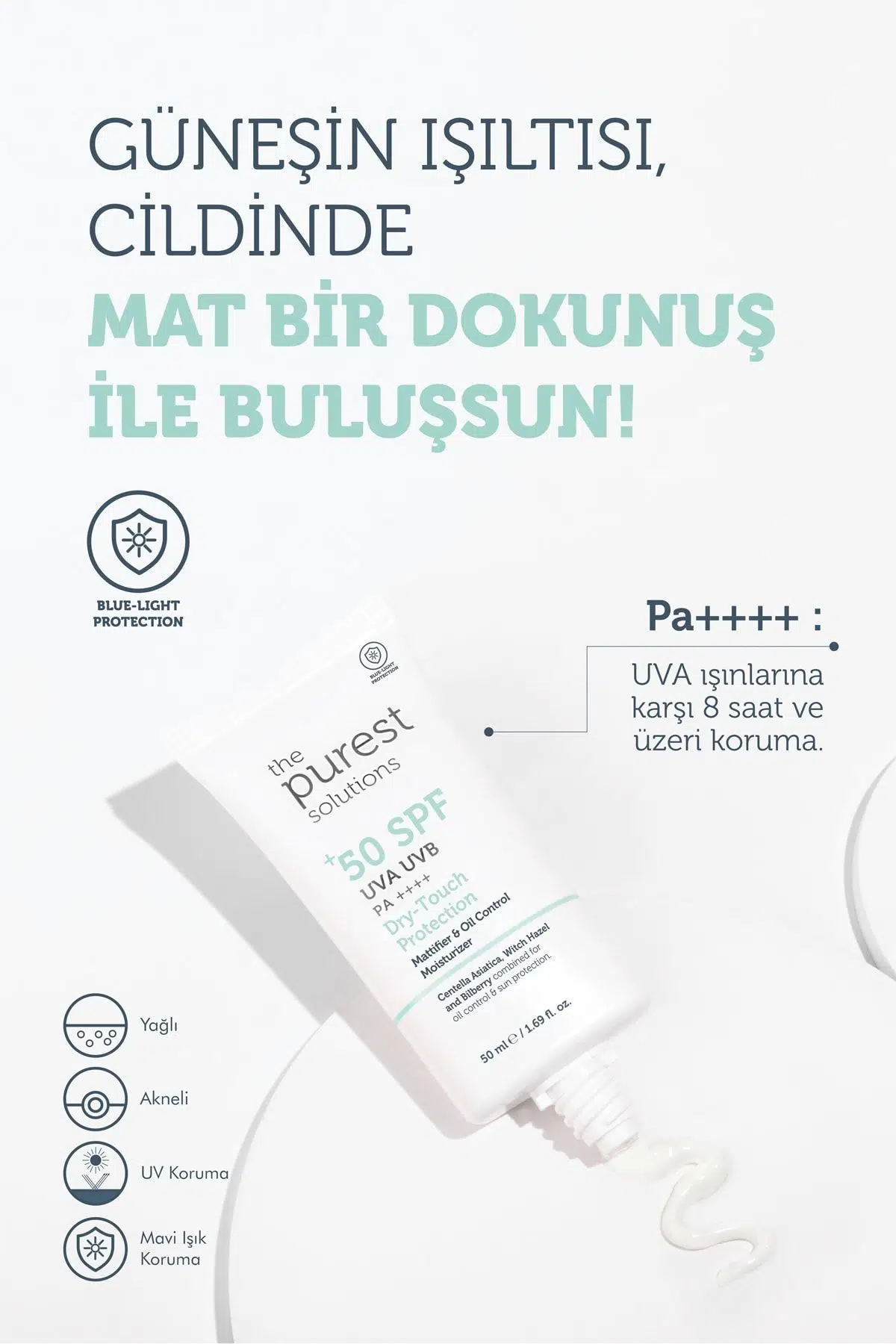 | Etiketler | The Purest Solutions Dry Touch Protection Mat Bitişli Yağlı Ciltler İçin Güneş Kremi SPF50+ 50 ml |