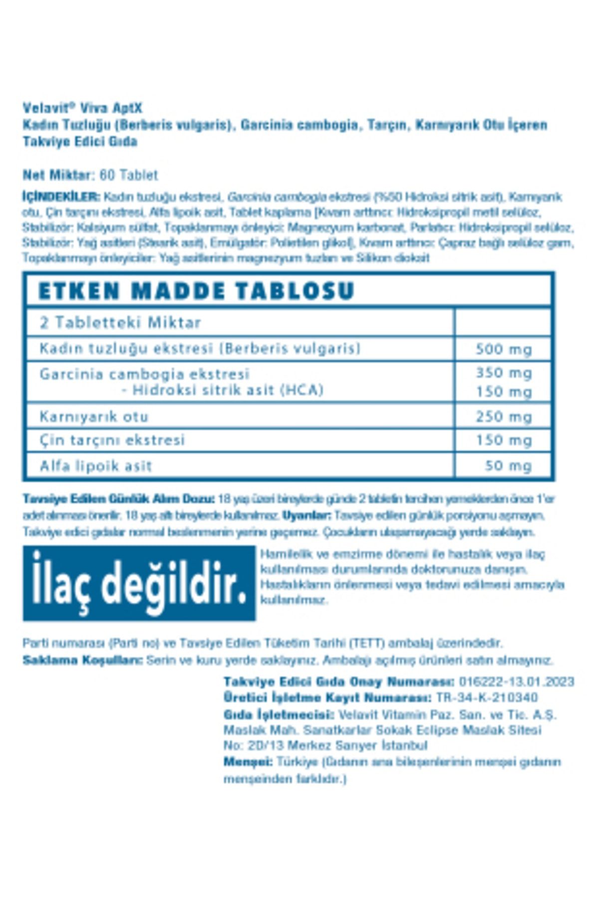 | Etiketler | Velavit Viva Aptx 60 Kapsül |