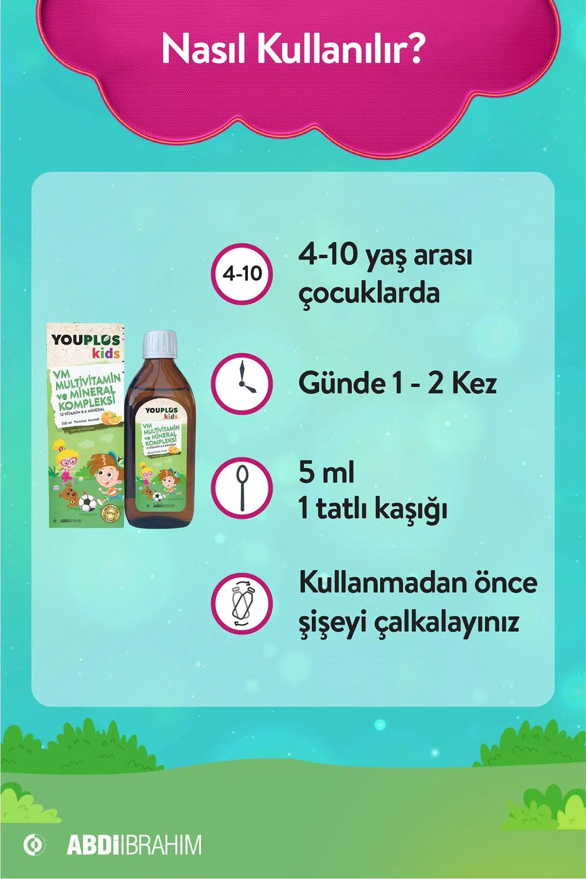 Youplus Kids Multi Vitamin ve Mineral Kompleksi 150 ML Şurup