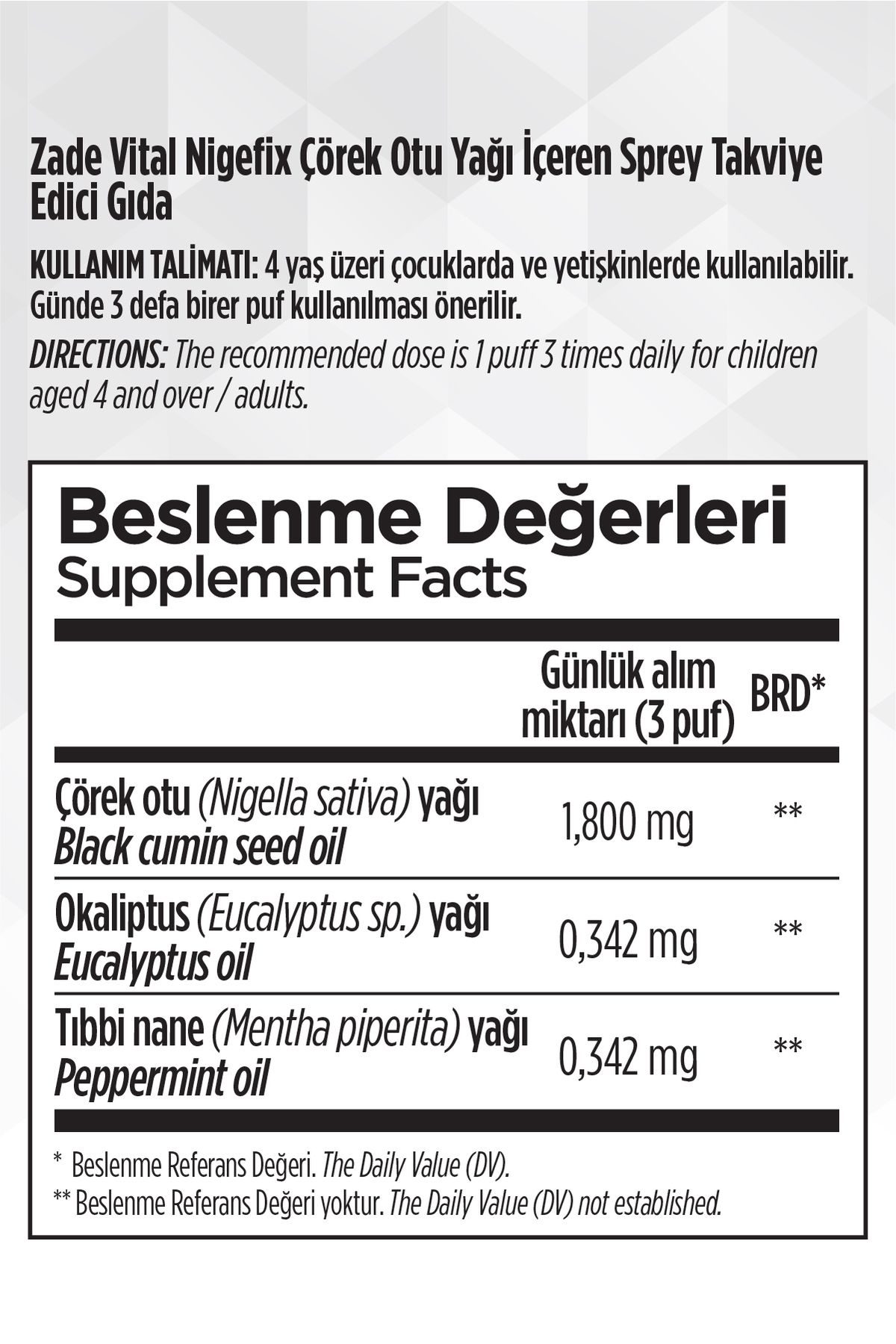 | Etiketler | Zade Vital Nigefix Çörek Otu Yağı İçeren Nazal Sprey 15 ML |